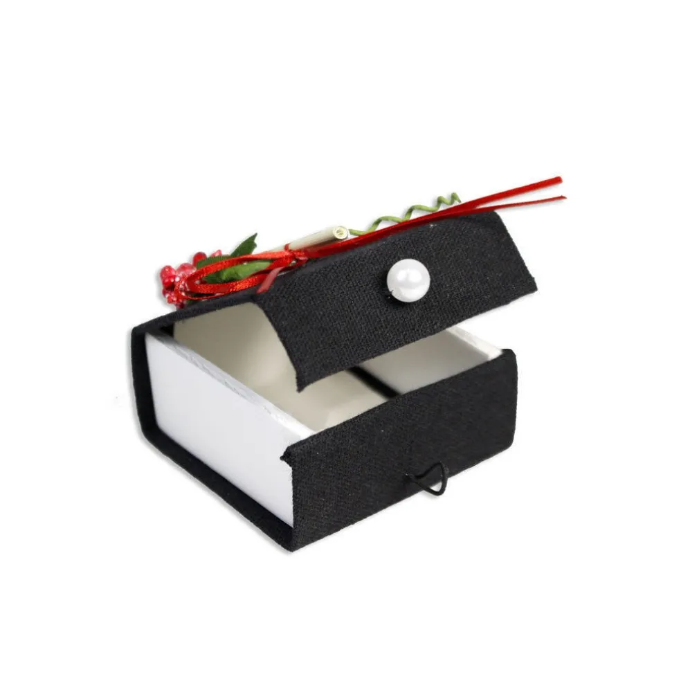 Scatolina in Tessuto con Pergamena Porta Confetti Bomboniera Laurea Nero