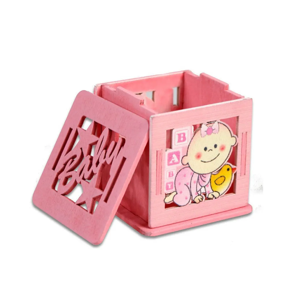 Raffinate e innovative bomboniere in legno con coperchio apribile per poter inserire confetti o caramelle colorate. Lateralmente presenta delle incisioni a forma di cuore che conferiscono un tocco di originalità. Disponibili nelle varianti rosa o celeste.