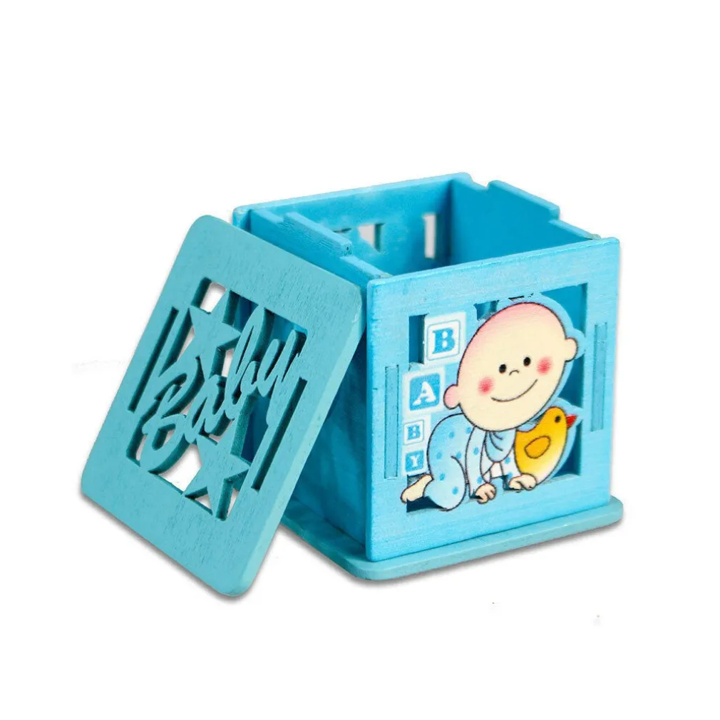 Scatolina Portaconfetti in Legno Bomboniera Nascita Battesimo Azzurro Maschio