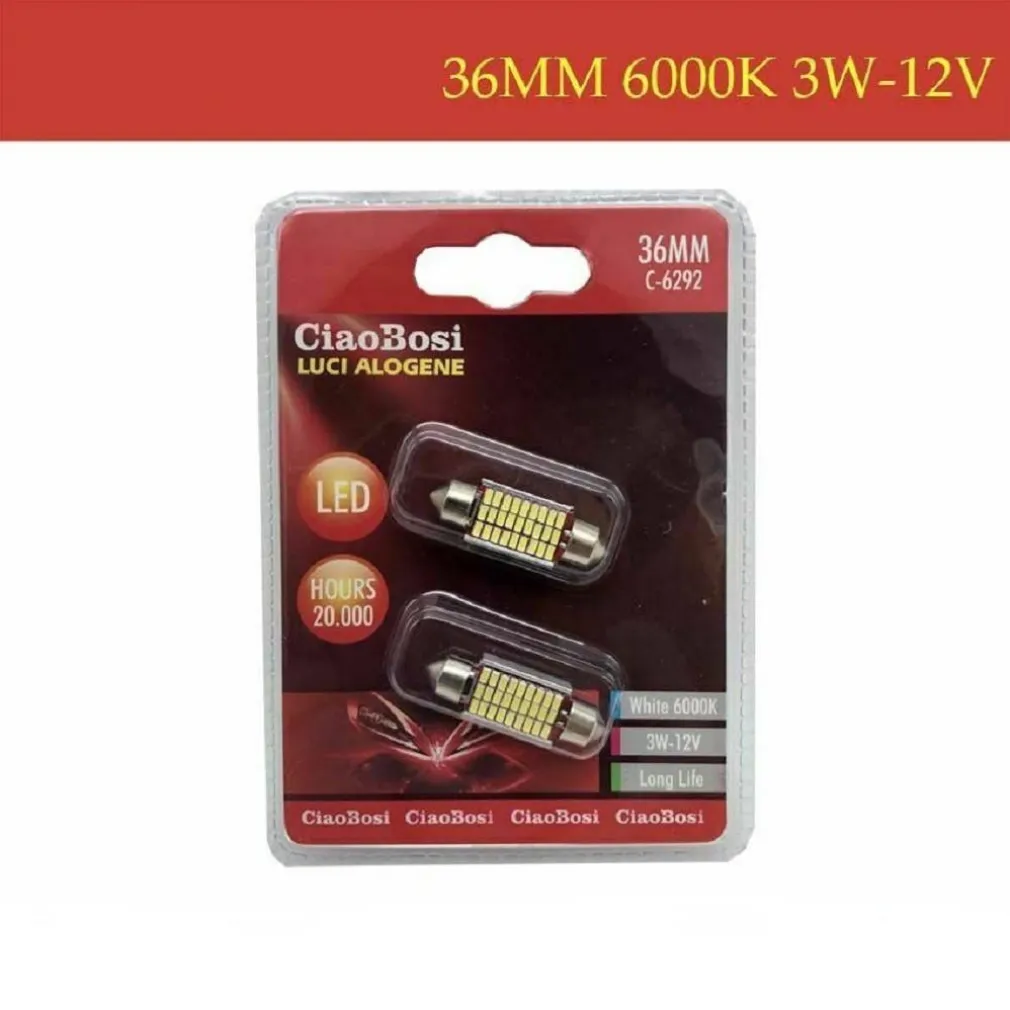 - Il kit include 2 Lampadine Auto LED 36mm, ciascuna con una potenza di 3 watt, progettate per una facile installazione. Aggiorna il tuo sistema di illuminazione senza sforzo e godi di un’esperienza di guida più luminosa e sicura.