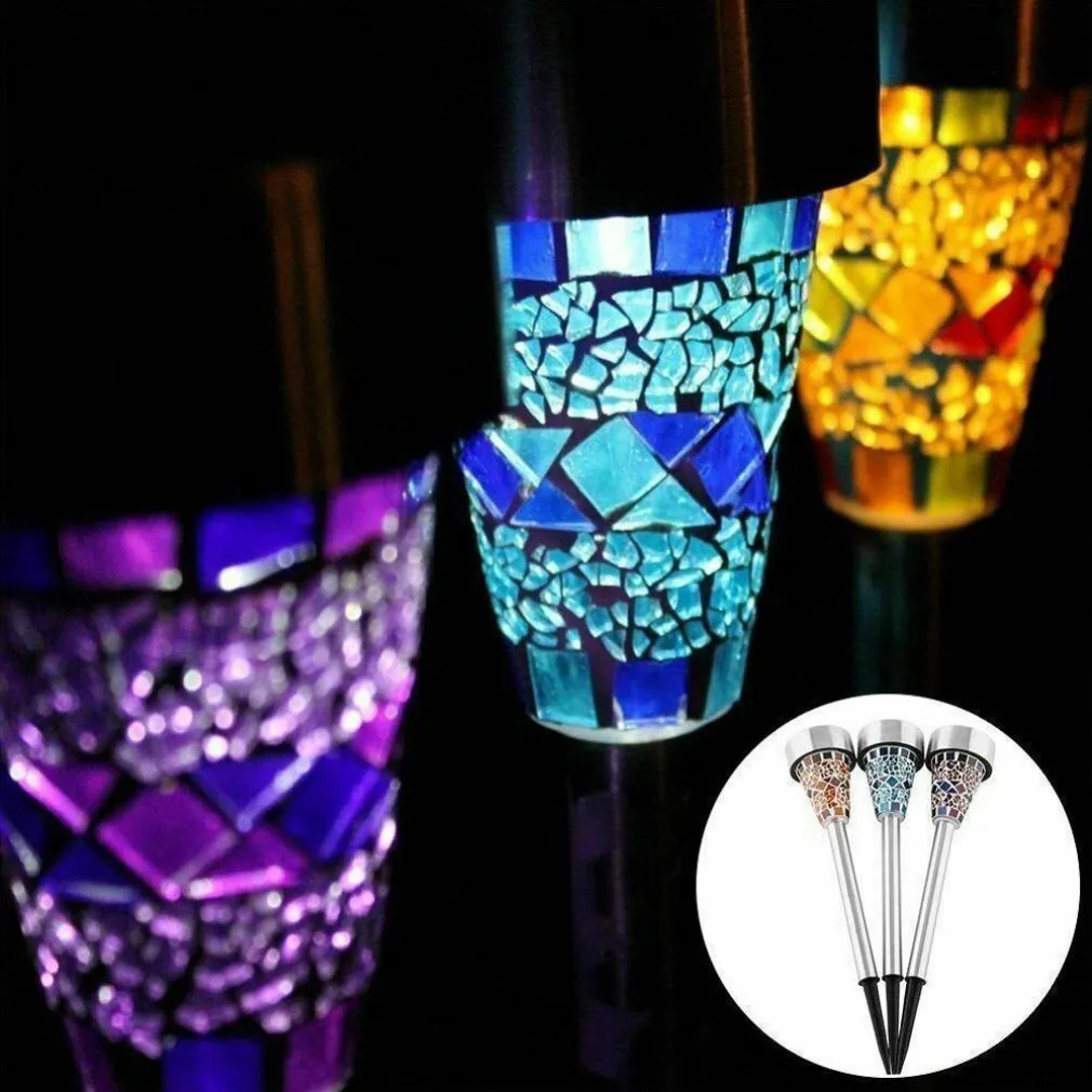 Set 3 Pezzi Lampade Luce Ricarica Solare Giardino Esterni Mosaico Colorato