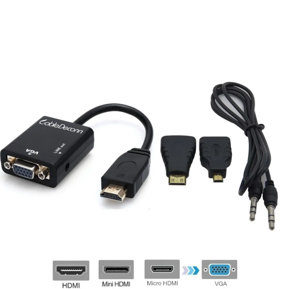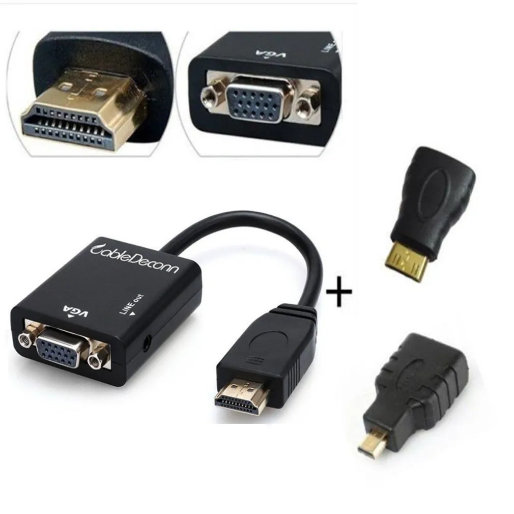 HDMI maschio a VGA Femmina + mini HDMI maschio a HDMI femmina adattatore + micro HDMI maschio a HDMI femmina cavo audio adattatore