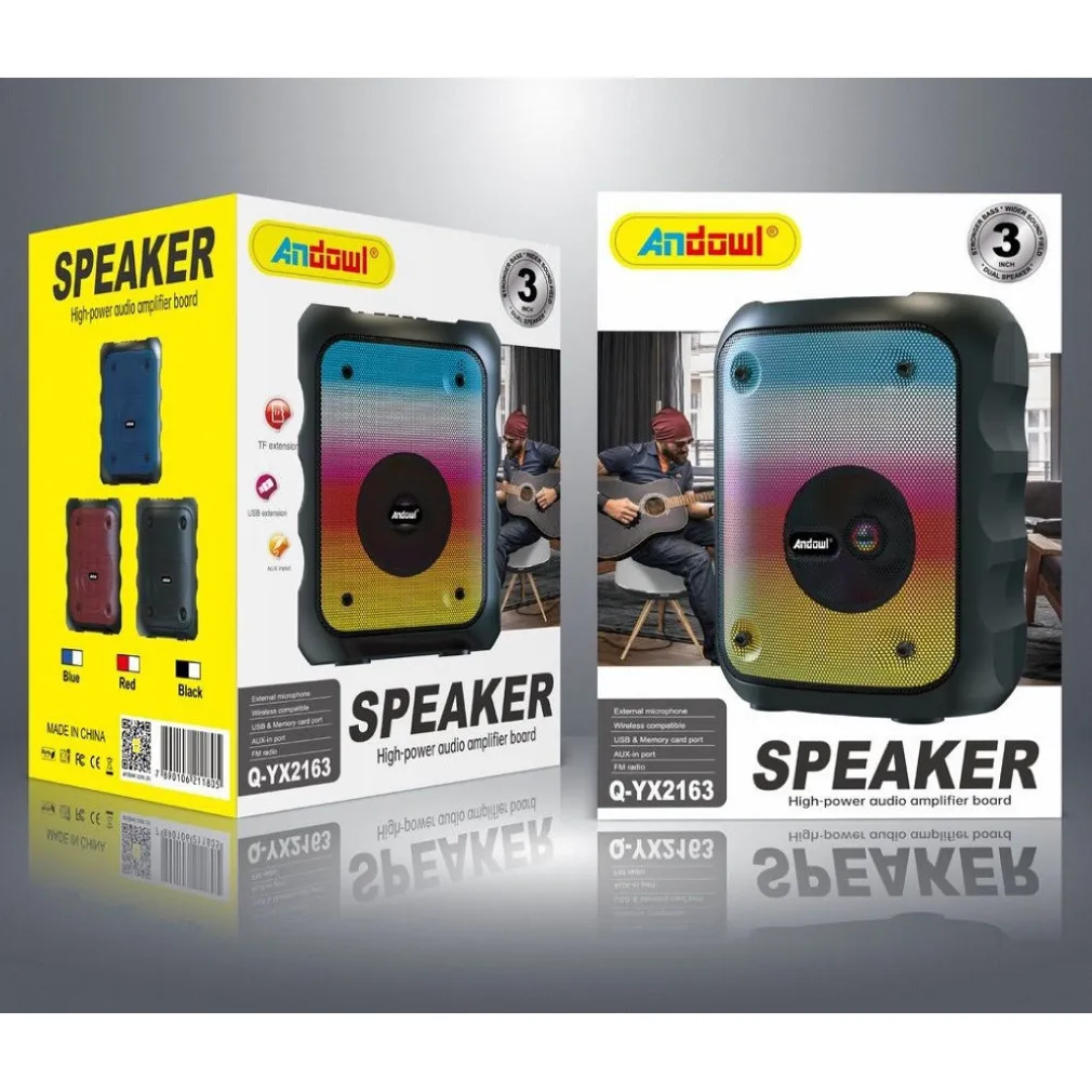 Lo speaker bluetooth portatile di Andowl con una potenza di 5 watt, è full range e può riprodurre qualsiasi brano musicale con prestazioni limitate nei bassi, in quanto non dispone di subwoofer. Con una carica completa, ti offre fino a 3 ore di riproduzione musicale continua. Inoltre, ha una radio per ascoltare le tue stazioni preferite e la possibilità di ricaricare tramite usb, quindi puoi caricarlo facilmente con un power bank. Infine, l’altoparlante dispone di luci a led integrate per creare un’illuminazione d’atmosfera nella stanza, durante la riproduzione di musica.