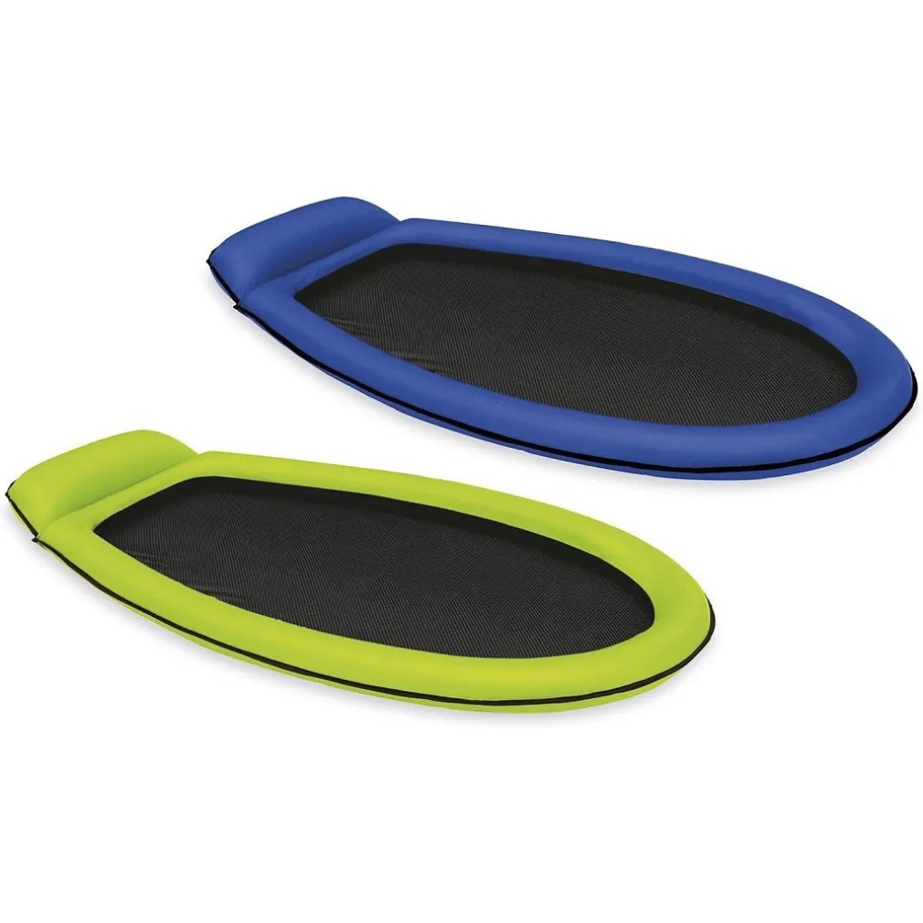 Rilassati e prendi il sole in acqua con l’Amaca! Grazie al suo design, è possibile raffreddare facilmente e prendere il sole. In questo modo puoi sdraiarti comodamente in acqua. Che sia al mare o in piscina, rilassati in acqua con questo materassino ad amaca con cuscino, prodotto in vinile rivestito in tessuto. Il fondo in rete ti permette di rinfrescarti comodamente da sdraiato. Leggero e maneggevole, si gonfia all’occorrenza in un attimo. Disponibile in colori assortiti.