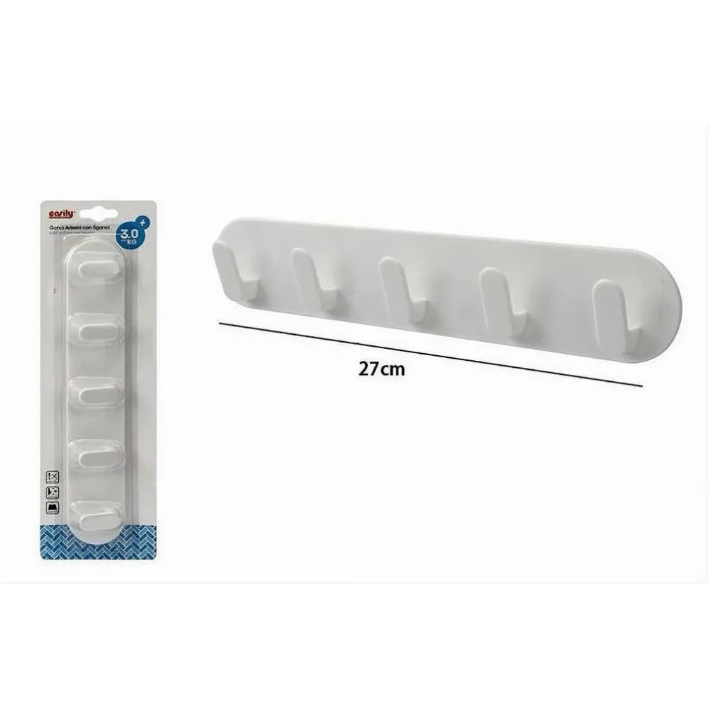 Appendiabiti 5 Ganci Posti Adesivo a Parete per Casa, Cucina e Bagno – Modello 79340