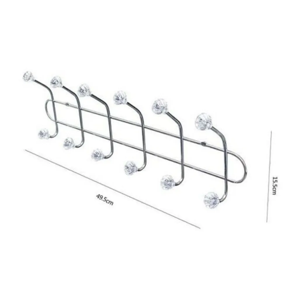 Appendiabiti da porta cromato con 12 ganci bianchi.