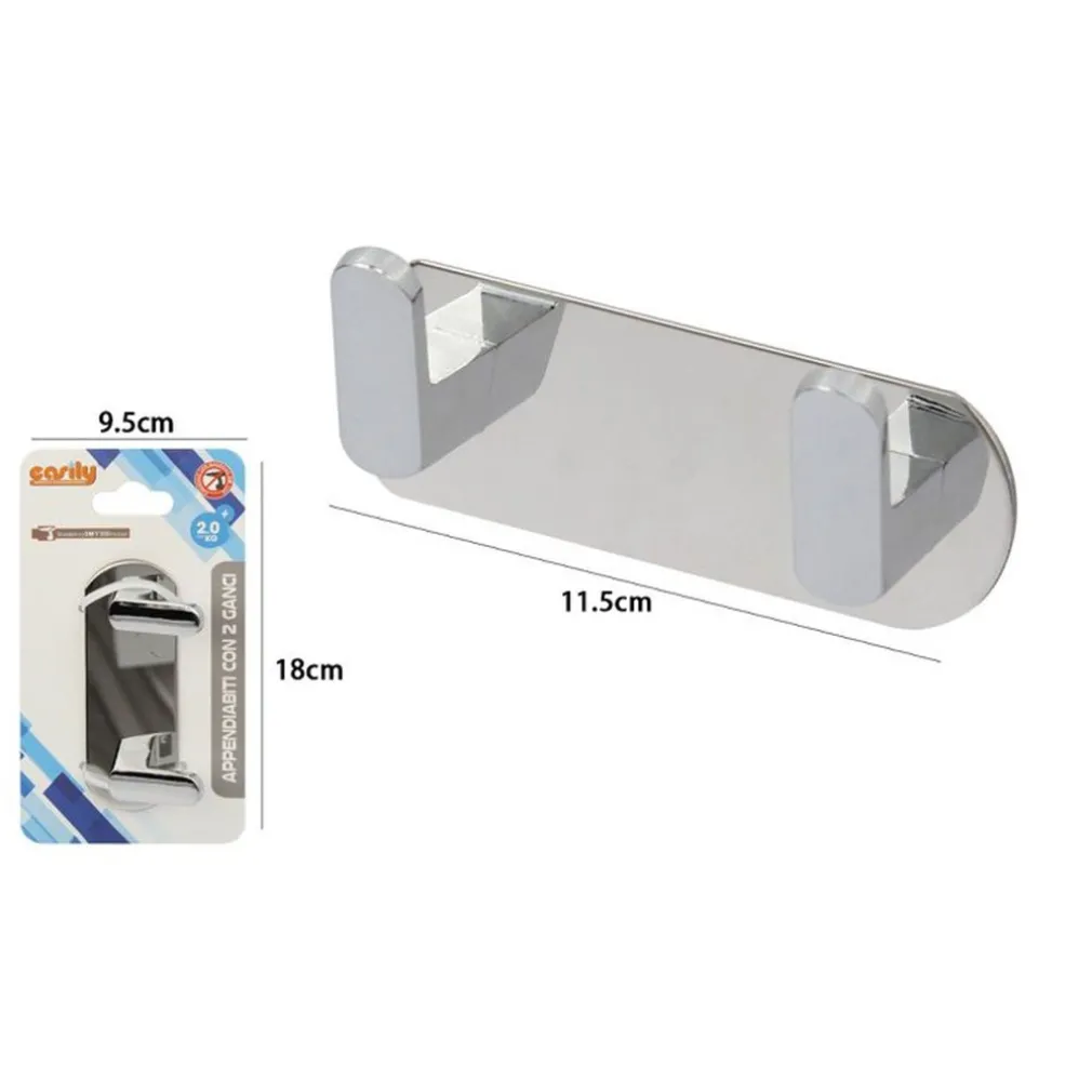Appendini con 2 Ganci – Appendino Portasciugamano per Bagno, Casa e Cucina – Cromato 59731