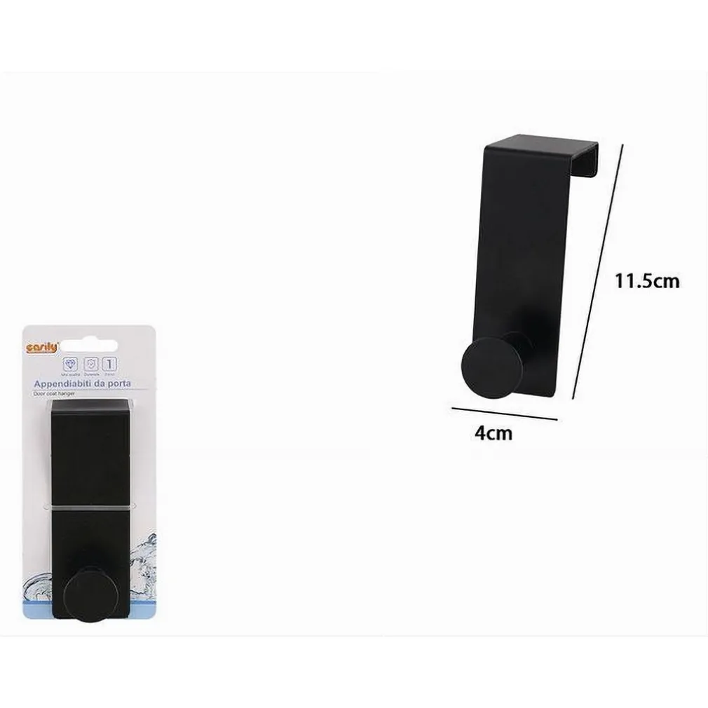 Appendibiti da Porta con 1 Gancio 4×11.5 cm Nero per Asciugamani e Vestiti 87774