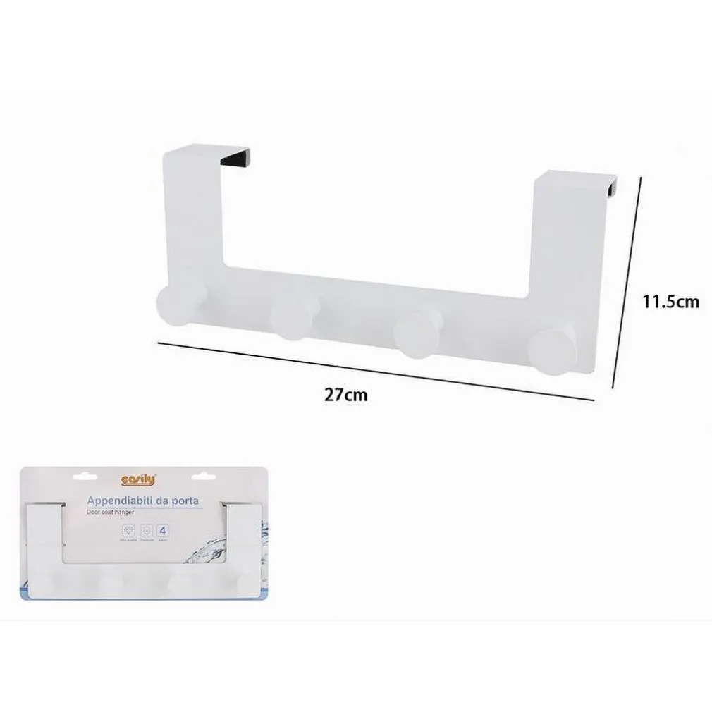 Appendiabiti da Porta con 4 Ganci 27×11.5cm Bianco – Accessorio Versatile per Asciugamani e Vestiti