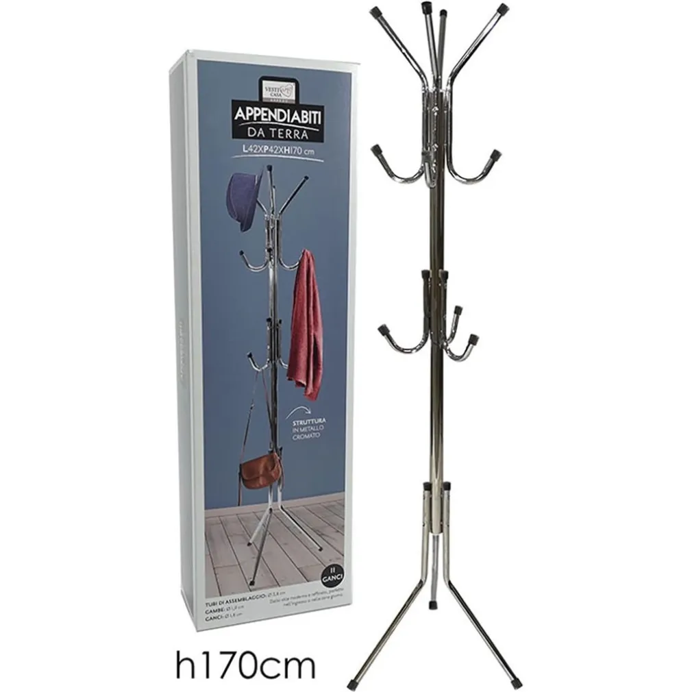 Dai un tocco di stile e praticità alla tua casa con il nostro appendiabiti da terra 170 cm, un complemento d’arredo moderno e raffinato, perfetto per ingresso, salotto, camera da letto o ufficio. Grazie alla sua struttura in metallo cromato e ai suoi 11 ganci, questo attaccapanni offre la soluzione ideale per appendere giacche, cappotti, borse e accessori con ordine ed eleganza.