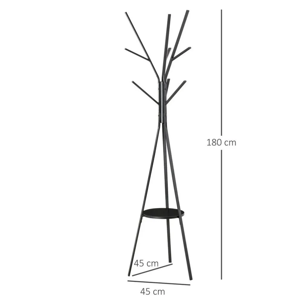 - 3 rami principali con 9 ganci per cappotti, borsette, sciarpe, giacche e altro.