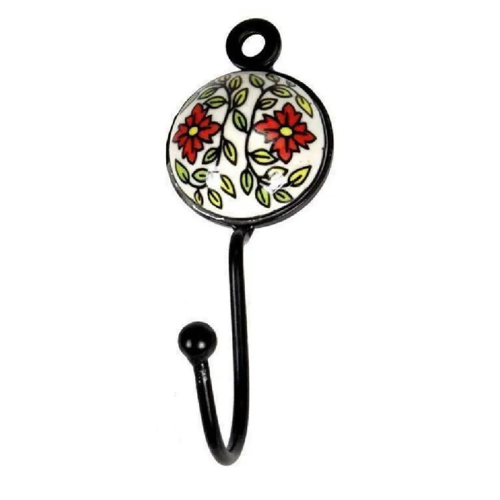 Appendino appendiabiti gancio in metallo con decorazione in ceramica