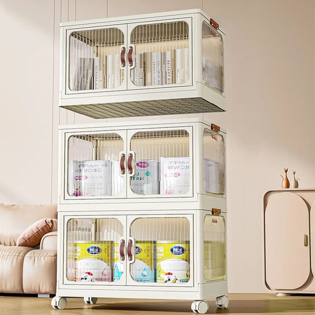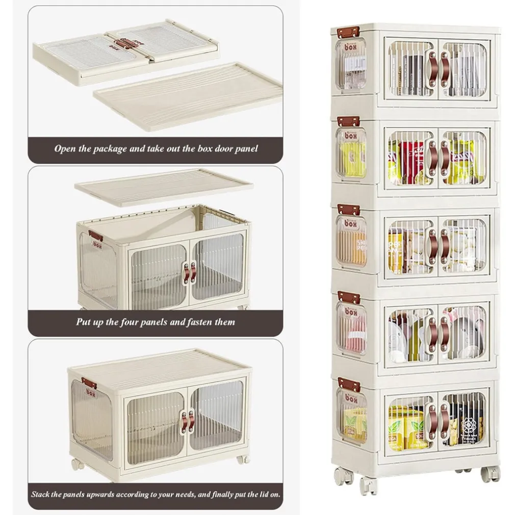 ARMADIETTO IN PLASTICA PIEGHEVOLE CON ANTE CONTENITORI TRASPARENTI CON RUOTE