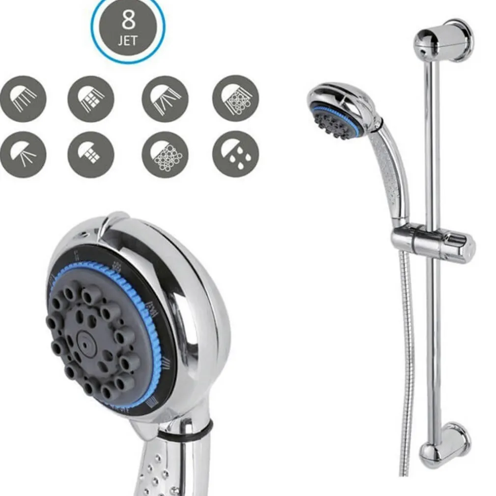 Pratico saliscendi con asta di 60cm e doccia multifunzione con 8 differenti getti.