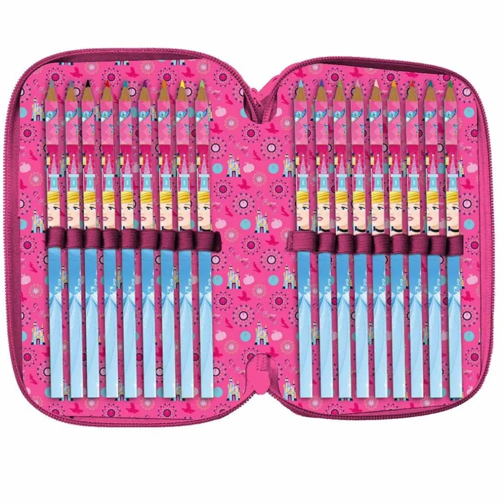 Corri a scuola come una vera principessa con l’astuccio portapastelli super accessoriato a 3 Cerniere con Serigrafie scuola Principesse Disney Completo di 45 Pezzi tra: