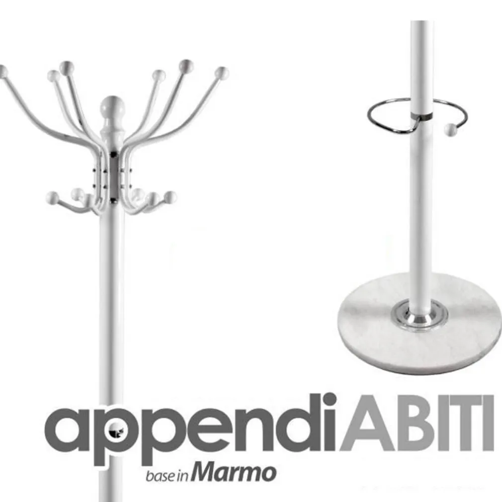 Dotato infine di base circolare in marmo bianco che conferisce all’attaccapanni un eccellente stabilità oltre a donare un bellissimo tocco elegante all’intero appendiabiti..