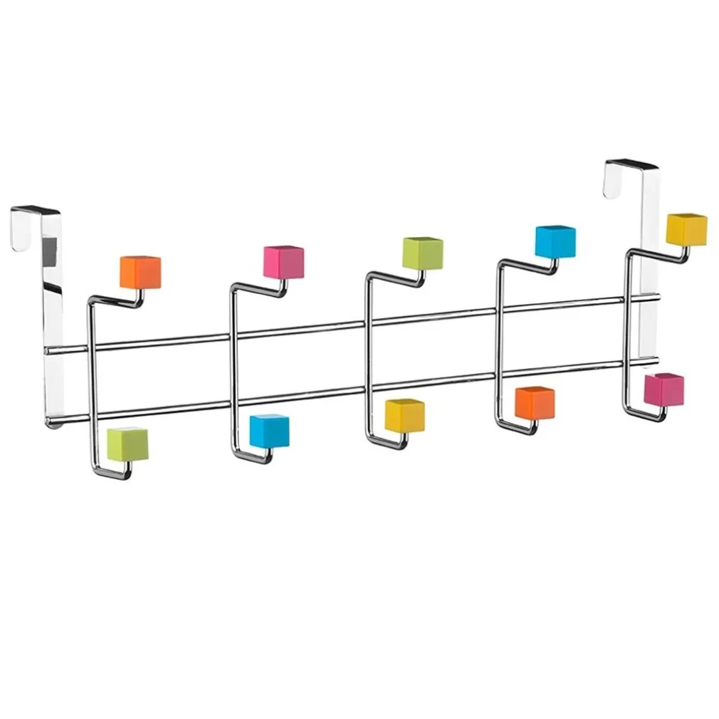 Appendiabiti per porta realizzato in metallo con 10 pomelli colorati di forma cubica. Si fissa al bordo superiore della porta, ed è l’ideale per riporre accappatoi, asciugamani, giacche risparmiando spazio con utilità. Ideale per arredo bagno o camera da letto.