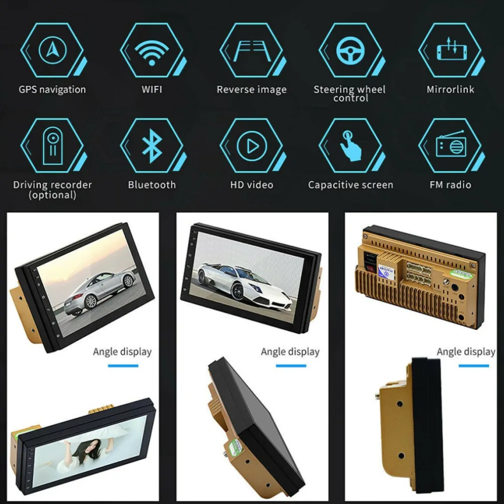 Stereo universale da 7″ pollici possibile collegare il bluetooth, comandi al volante del veicolo, possibile ricevere chiamate dal display, radio mp3-mp4-mp5.