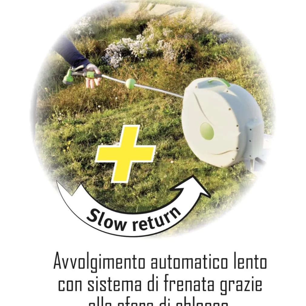 Tubo in PVC da 30 metri: Il nostro avvolgitubo è dotato di un robusto tubo da 30 metri in PVC che ti consente di raggiungere facilmente tutte le aree del tuo giardino.