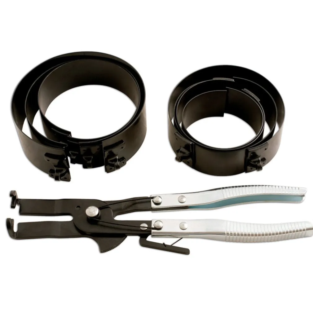 pinza a cricchetto di compressione anelli raschia-olio (auto-regolante) e 6 compressori per anelli raschia-olio nei seguenti formati: