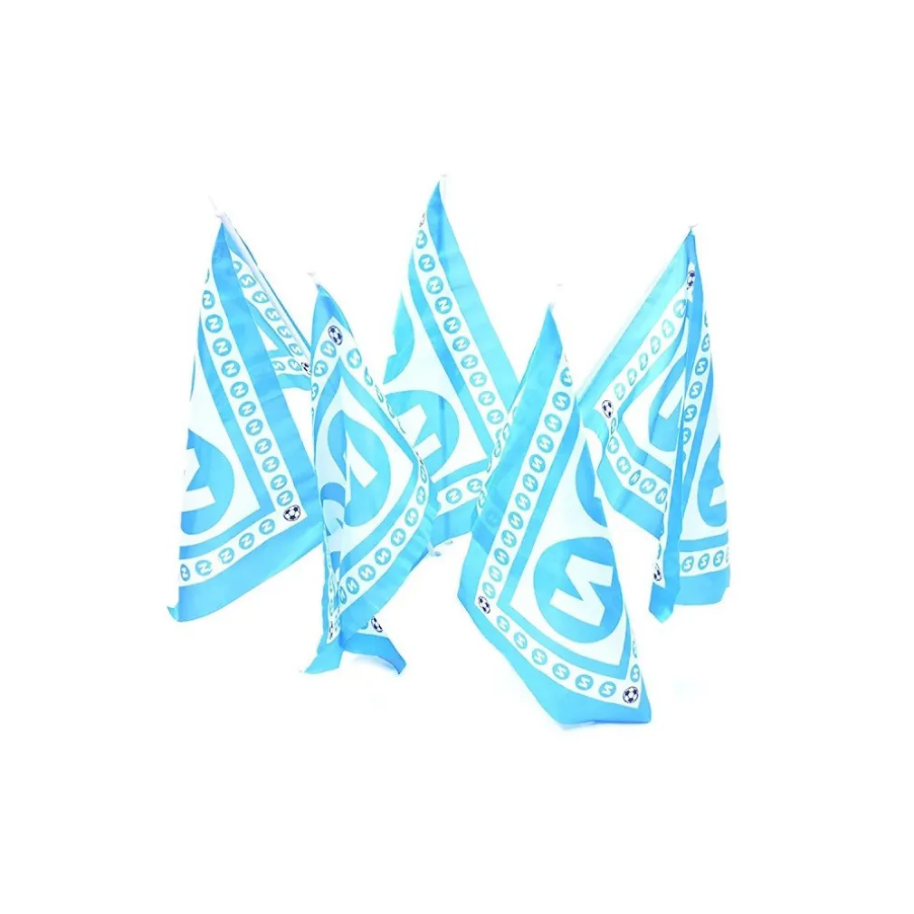 Bandiera del Napoli realizzata in 100% poliestere fornita con asta in plastica. Ottima qualità del materiale, tela resistente.