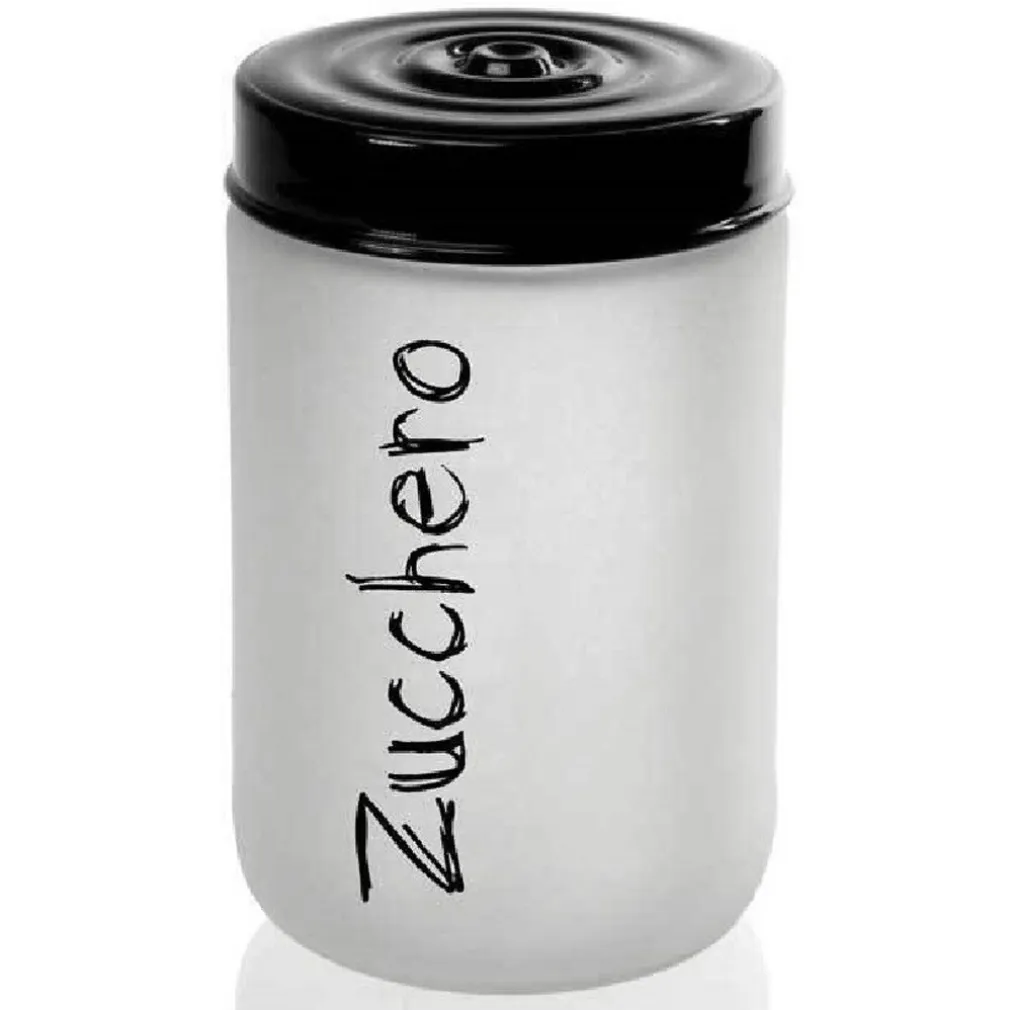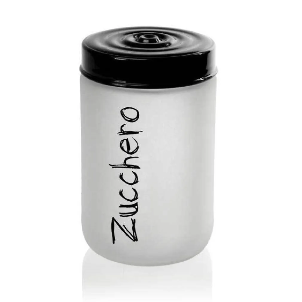 BARATTOLO ZUCCHERO CONTENITORE VETRO SATINATO COPERCHIO NERO 660 ML 15CM 833267