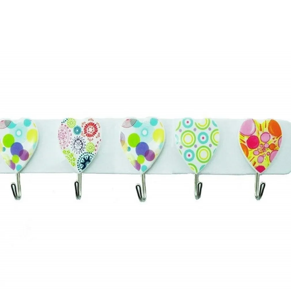 BARRA 5 GANCI GANCIO ACCIAIO 3.5KG CUORE ADESIVA APPENDINI PLASTICA APPENDIABITI APPENDI TUTTO STROFINACCI CUCINA. COLORE CASUALE.