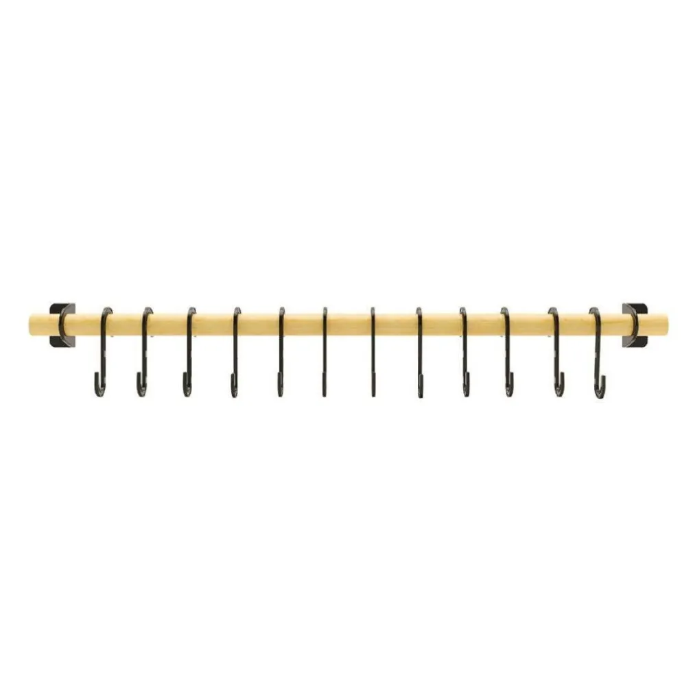 Barra Porta Utensili Cucina da Parete in Legno 3 x 60 x 5 cm con 12 Ganci 838309