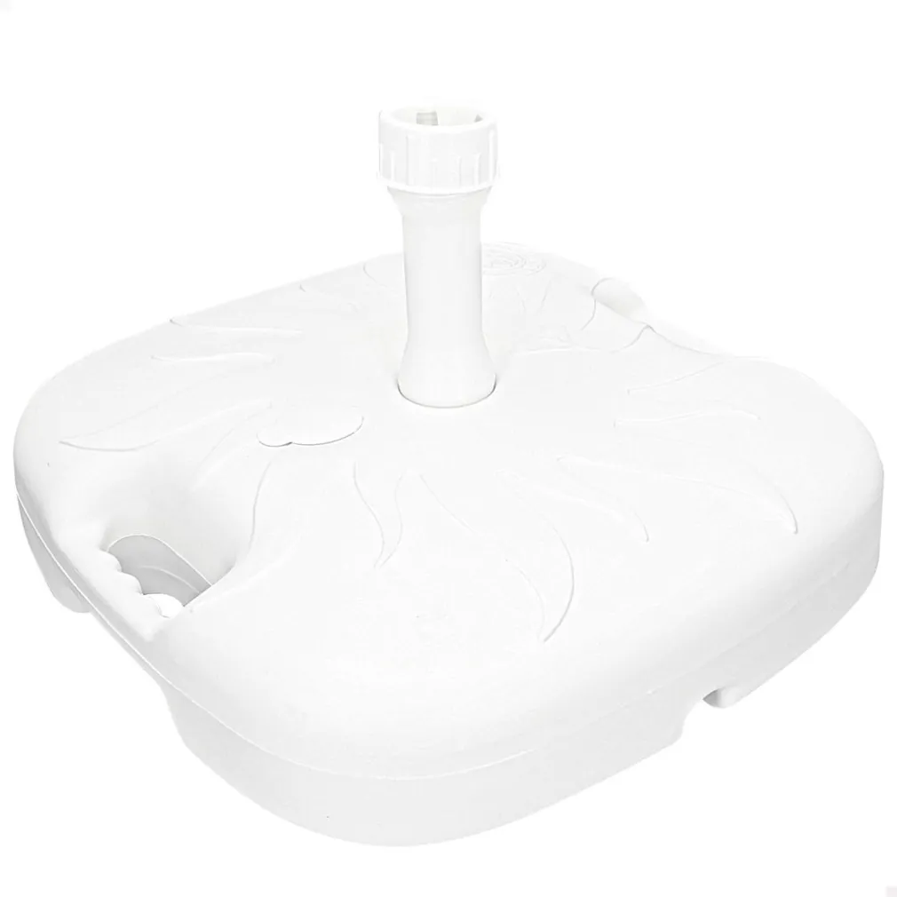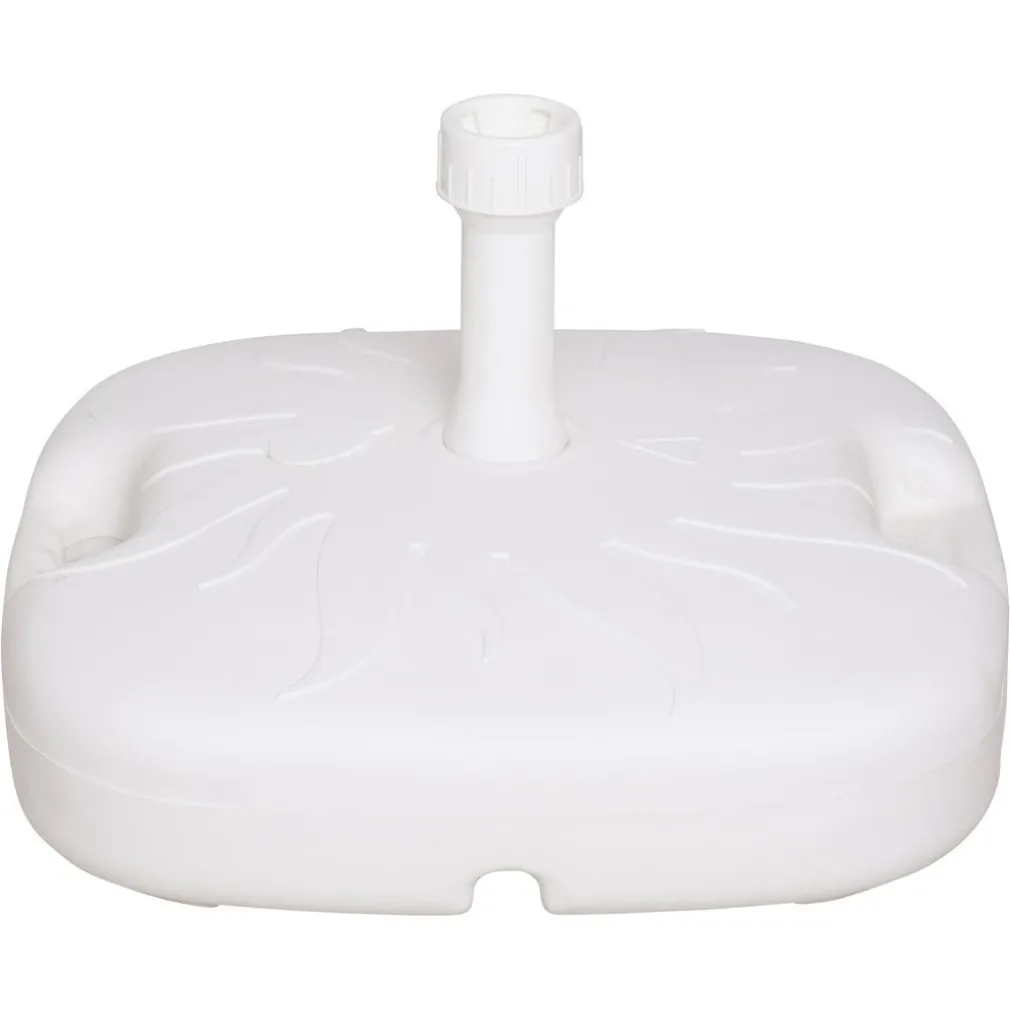 È una base in plastica da riempire (acqua o sabbia) progettata per offrire stabilità agli ombrelloni da giardino o esterno. Il modello presenta un design curato, decorazione solare in rilievo e maniglia ergonomica.
