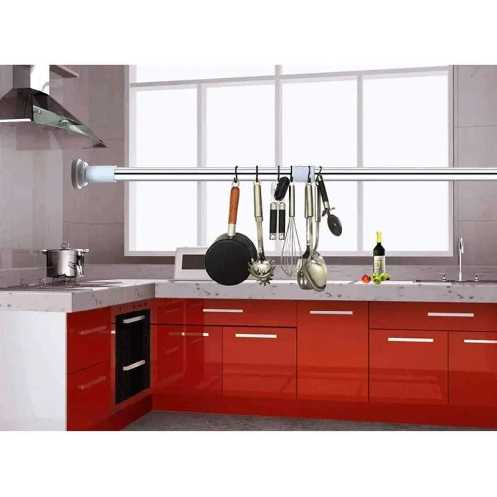 Può essere usata come bastone per tenda doccia, palo per armadio, barra appendiabiti, stendibiancheria temporaneo o supporto da cucina. È una soluzione multiuso e salvaspazio.