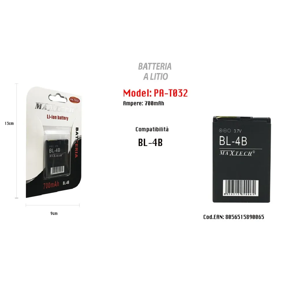 BATTERIA COMPATIBILE CON BL-4B LITIO 700MAH BATTERIA RICARICABILE MAXTECH PAT032
