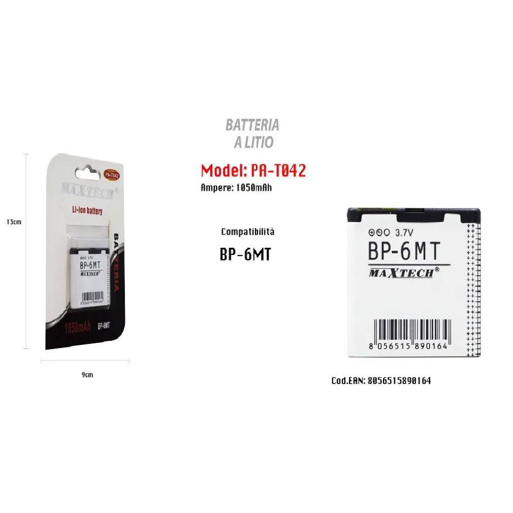 BATTERIA LI-ION 1050MAH COMPATIBILE MODELLO BP-6MT 3.7V RICAMBIO MAXTECH PA-T042