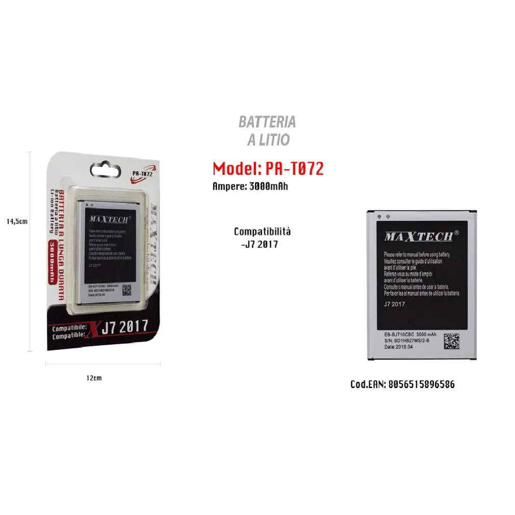 La batteria MaxTech PA-T072 è dotata di una potente tecnologia al litio, garantendo una carica stabile e affidabile. Che tu stia navigando su internet, giocando o utilizzando le funzionalità del tuo Samsung J7 2017, questa batteria è pronta a supportarti in ogni attività.