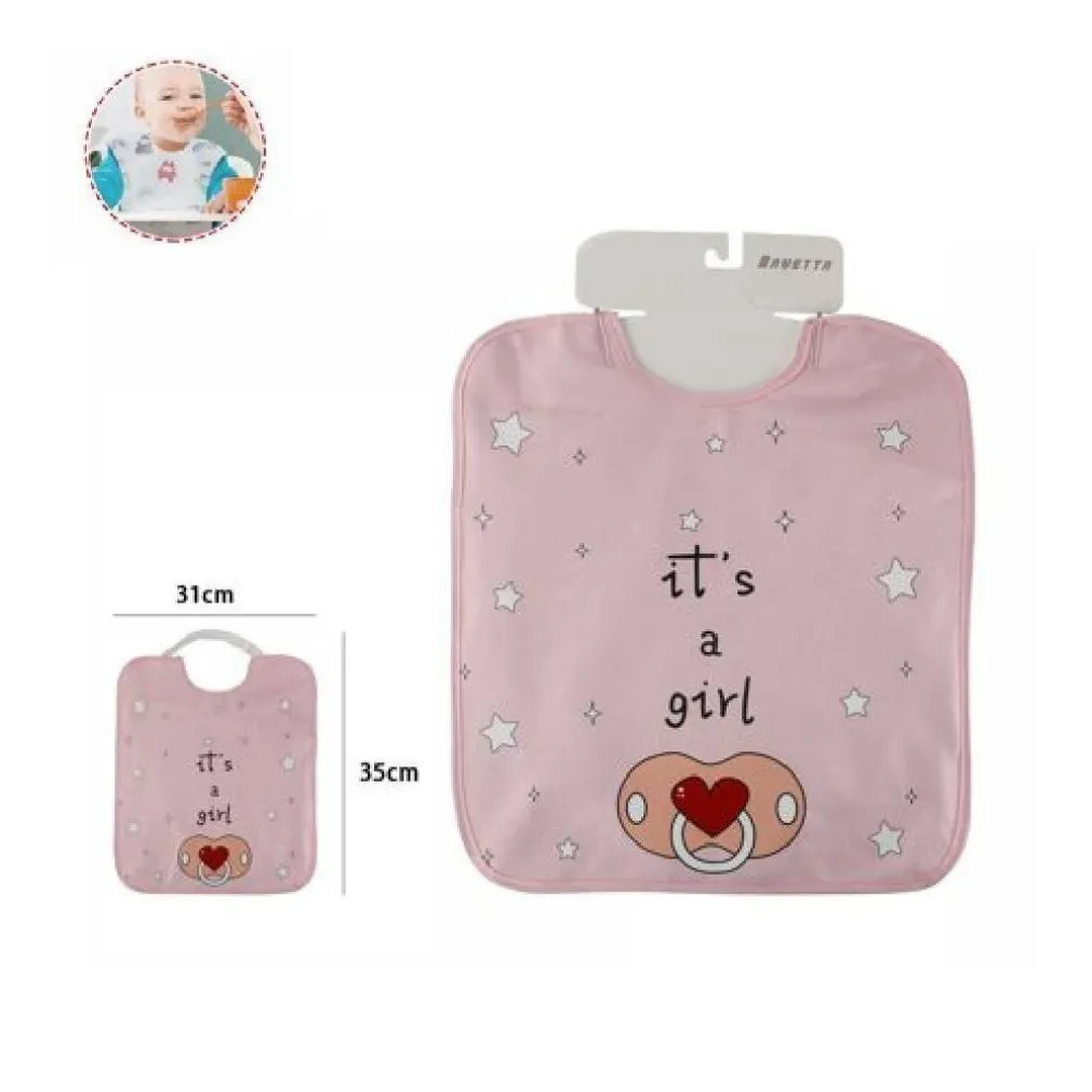 Il Bavetto Bavaglino Neonato Pappa Allattamento Bambina “IT’S A GIRL” è un’adorabile aggiunta alla tua attrezzatura per l’alimentazione del tuo piccolo tesoro. Con una misura di 31x35cm, offre un’ampia copertura per proteggere i vestiti del tuo bambino durante i pasti.