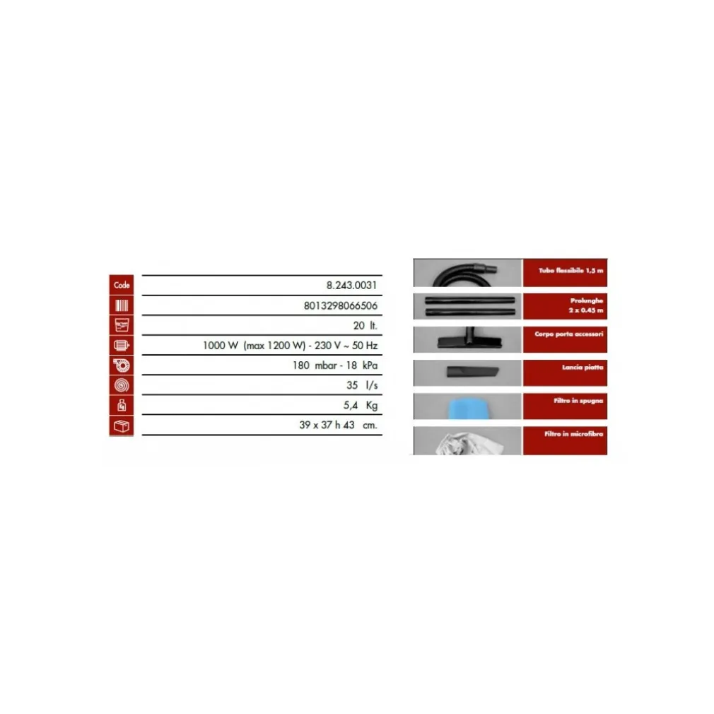 BIDONE ASPIRATUTTO SOLIDI E LIQUIDI 1200W LAVOR WASH RUDY 1200S 20 LITRI