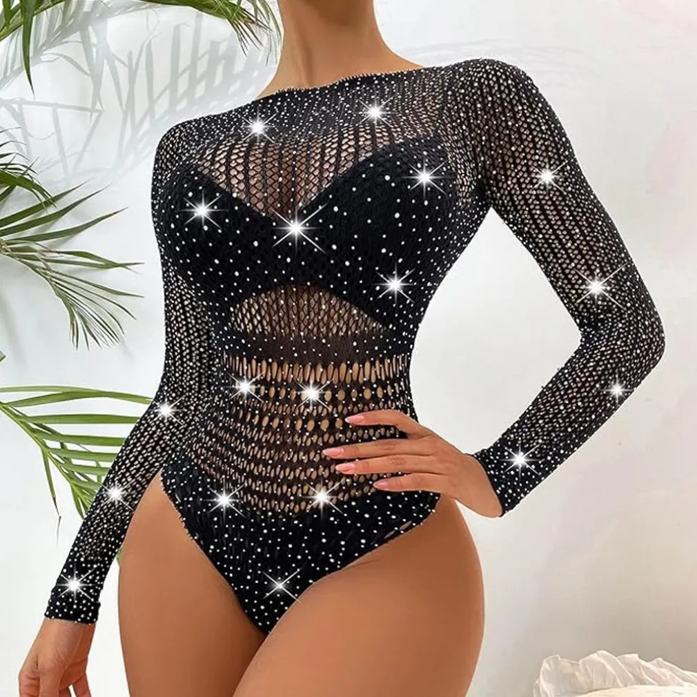 Rivela la tua femminilità con il nostro Body con Strass in Rete Trasparente – un capolavoro di eleganza e sensualità che ti farà sentire irresistibilmente sexy in ogni momento.