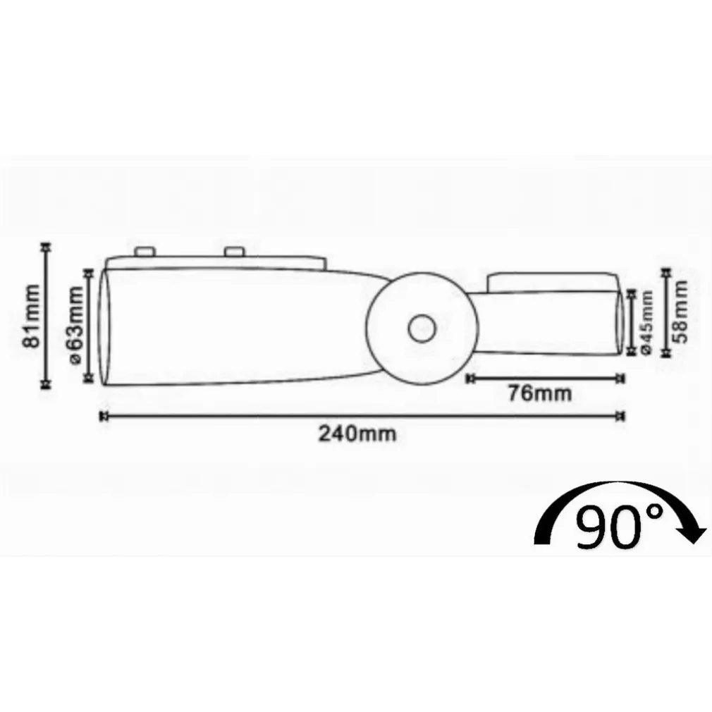 - Regolabilità: Grazie al nostro adattatore, puoi regolare l’angolo di inclinazione della lampada stradale fino a 90°, offrendoti un controllo completo sull’orientamento della luce.