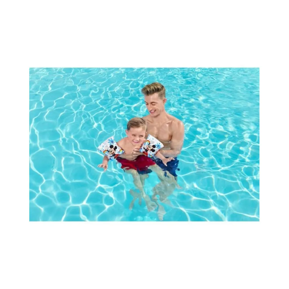 Topolino è pronto ad aiutare il tuo piccolo a tuffarsi nell’azione con i braccioli gonfiabili. Perfetti per i bambini dai 3 ai 6 anni, questi braccioli decorati con il più amato personaggio di sempre, regaleranno a tuo figlio un sorriso e un’iniezione di fiducia mentre si esercita a nuotare. Morbidi ma aderenti, i braccioli sono anche dotati di una doppia camera d’aria per una maggiore stabilità in acqua, di modo che il tuo bimbo possa sentirsi completamente sicuro e a proprio agio nel prendere confidenza con l’ambiente acquatico. Facili da gonfiare, sgonfiare e riporre, sono ideali da tenere nel borsone da spiaggia per averli sempre a portata di mano. Imparare a nuotare non è mai stato così sicuro e divertente!