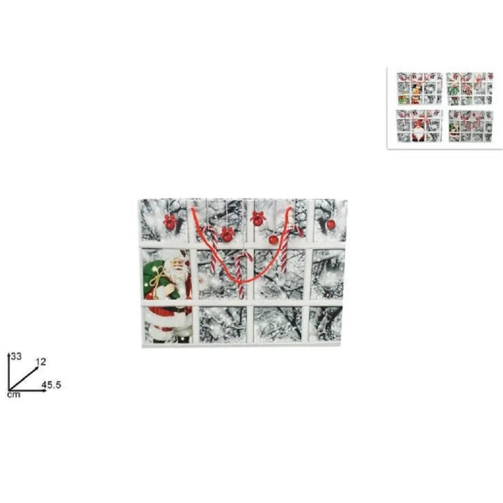 Confeziona con eleganza i tuoi regali con la bellissima busta da regalo natalizia con una bellissima stampa di una finestra con paesaggio innevato, dotata di 2 pratici manici di colore rosso, misure: 45,5 x 33 x 12 cm. Disponibile in stampe diverse