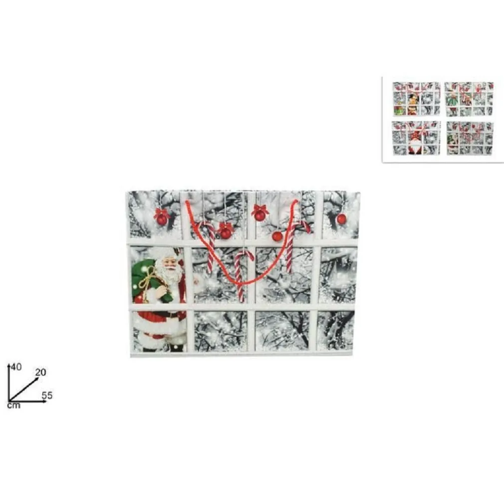 Confeziona con eleganza i tuoi regali con la bellissima busta da regalo natalizia con una bellissima stampa di una finestra con paesaggio innevato, dotata di 2 pratici manici di colore rosso, misure: 55 x 40 x 20 cm. Disponibile in stampe diverse