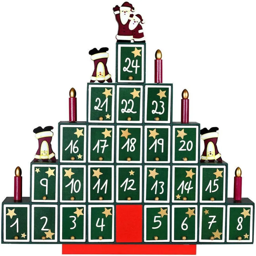 - 1 x Calendario Avvento Albero di Natale in Legno 24 Cassetti Decorazioni Natalizie