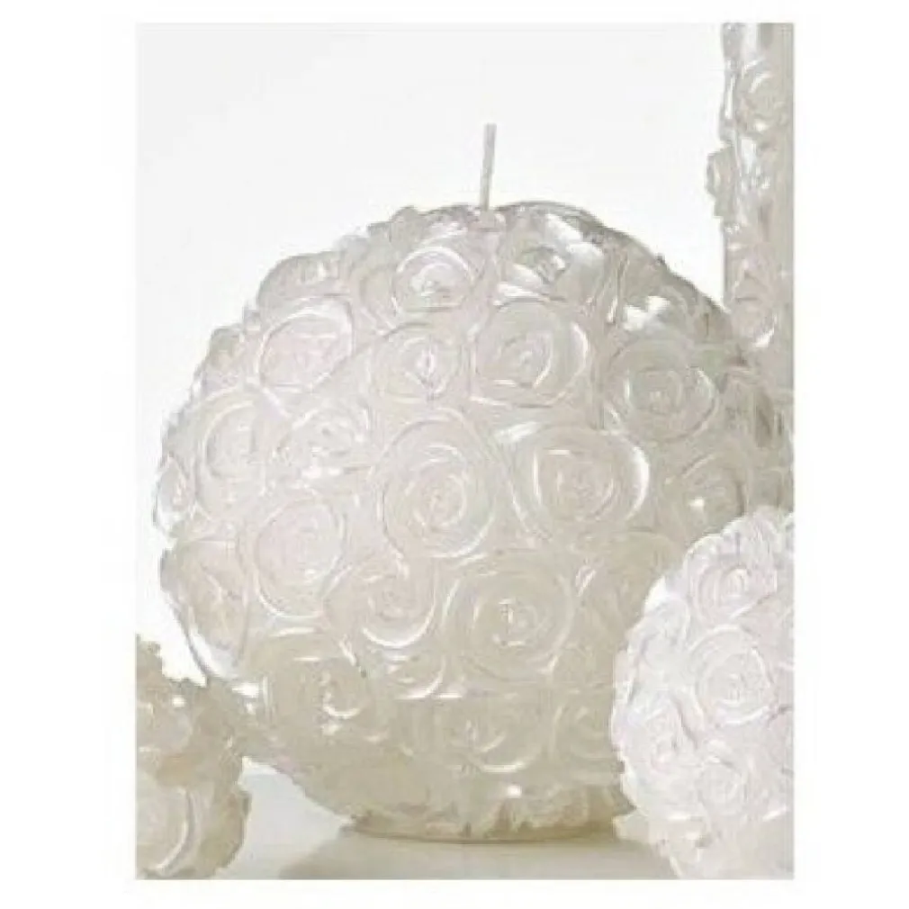 Candela Sferica Sfera Bianca Con Roselline Lumino Decorazione