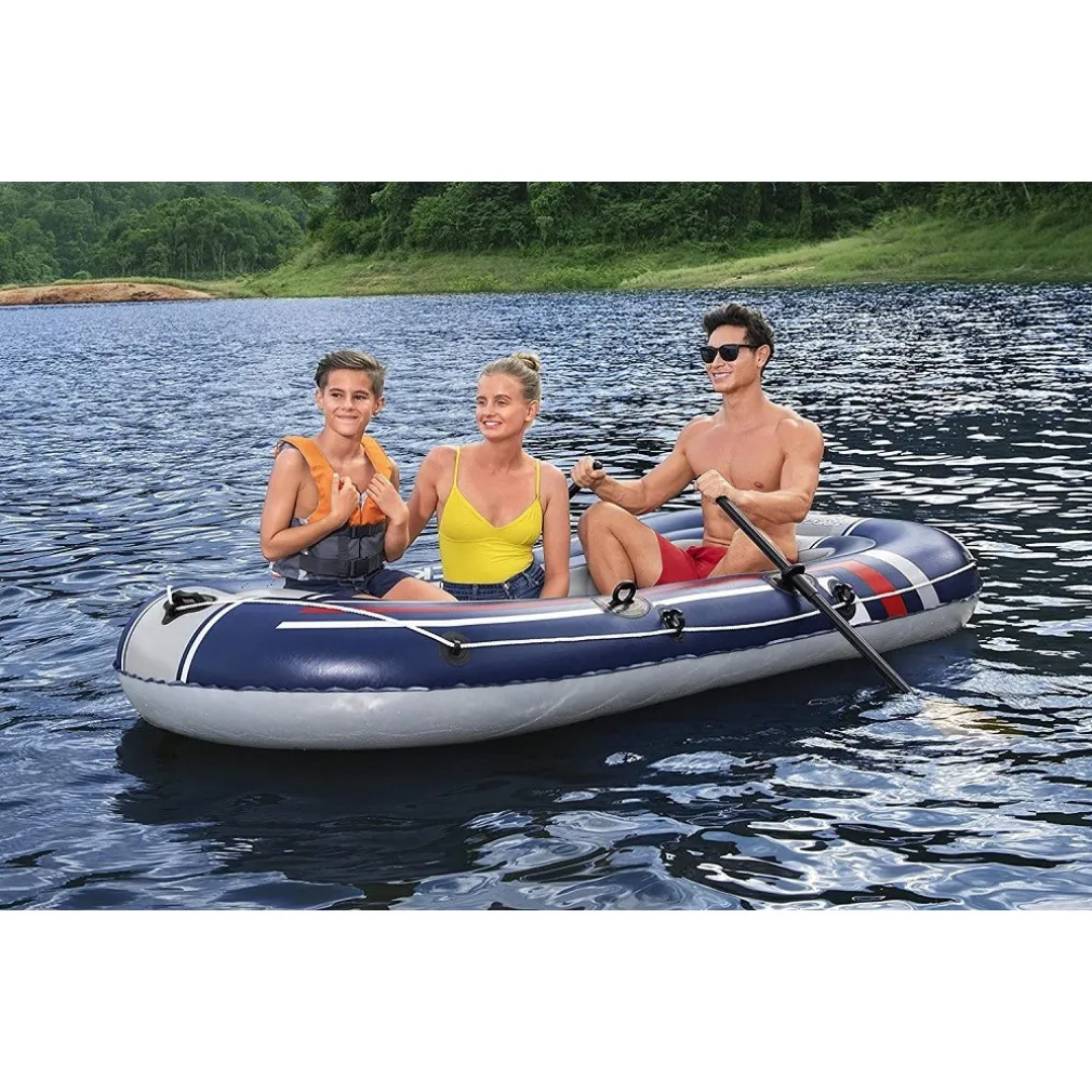 - 1 set di remi Hydro-Force con manico e pala in plastica robusti e leggeri, ciascuno con lunghezza di 124 cm. Pale dei remi grandi e scanalate. Costruzione in 3 pezzi per un facile montaggio e smontaggio.