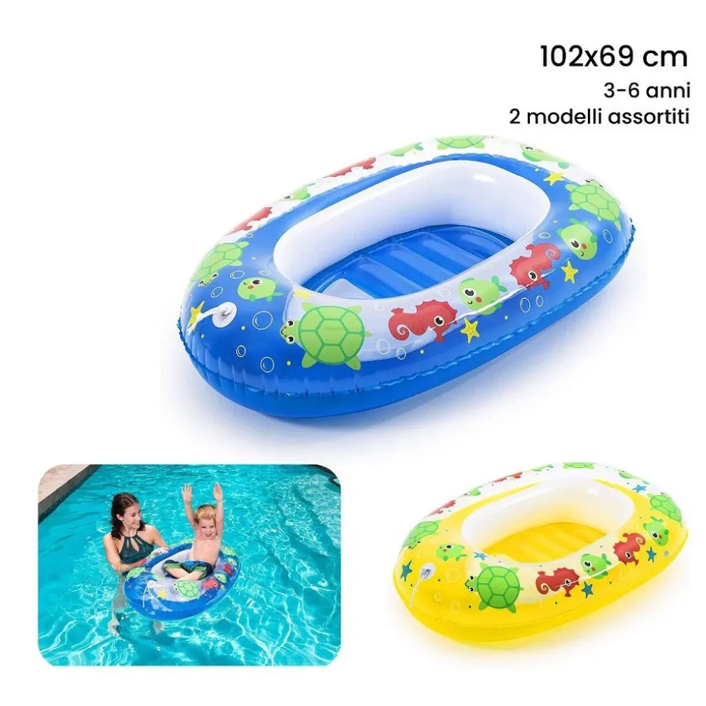 Con questo gommone i vostri bambini potranno divertirsi in piscina per ore. Nel canotto tubolare colorato vivono le più grandi avventure durante una vacanza o una calda giornata estiva. La barca è facile da gonfiare e ha un anello di plastica con una corda. Questo canotto è disponibile in giallo o blu e il fondo gonfiabile offre maggiore comfort e stabilità. Progettato per il movimento e molto piacere all’aria aperta, questa barca per bambini è il divertimento al centro dell’attenzione. Non è mai stato così divertente.