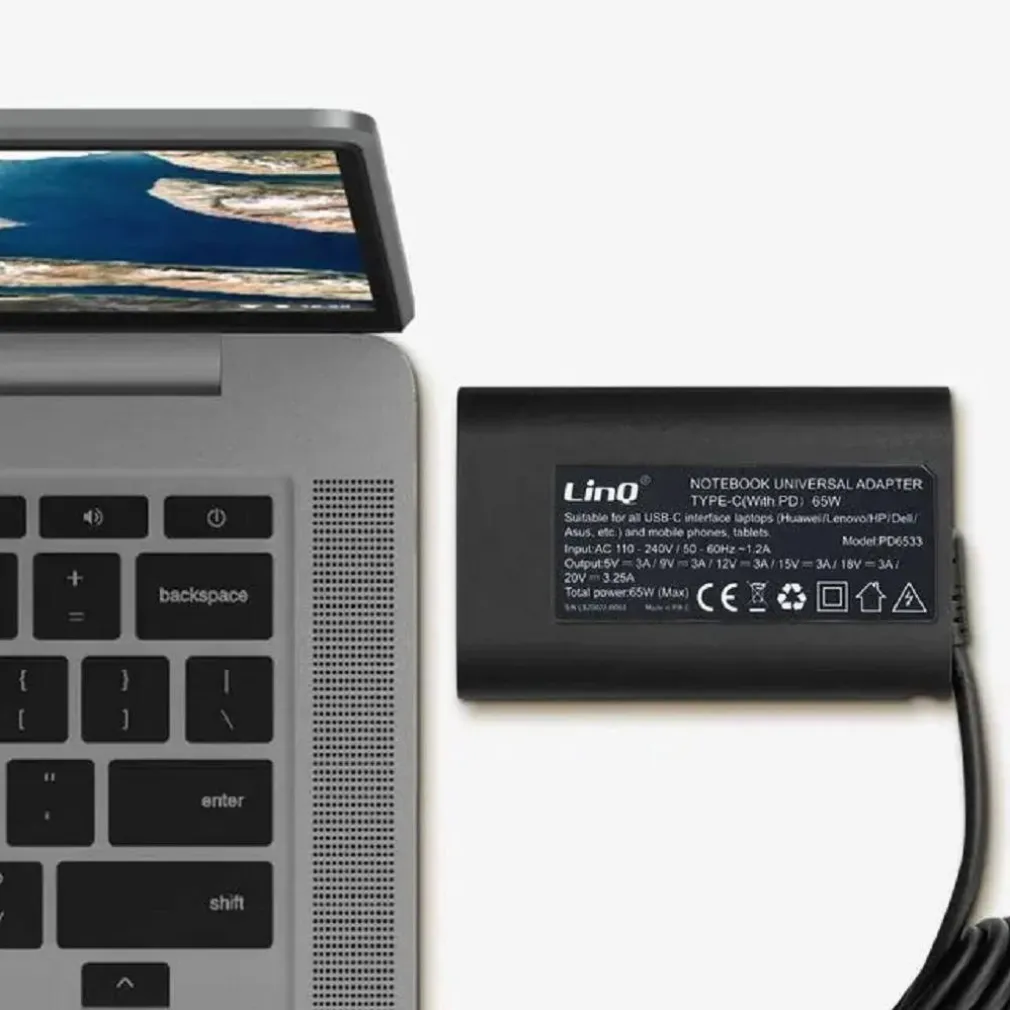 Caricatore da parete, per un’alimentazione rapida e sicura del tuo computer portatile. È dotato di una porta USB-C Power Delivery con una potenza massima di 65W. Include un cavo da USB-C a USB-C lungo 1 metro e 80, con ampia compatibilità.