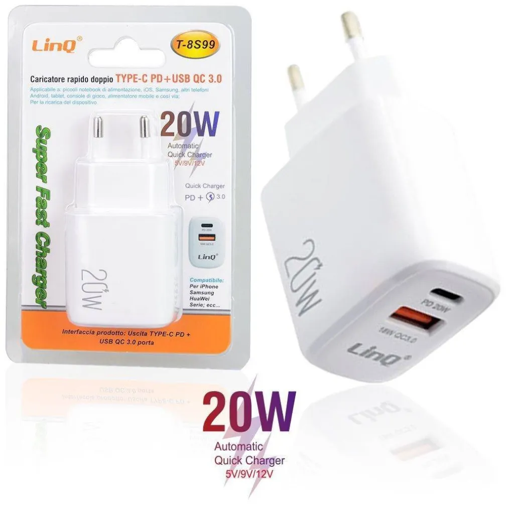 Hai bisogno di una ricarica rapida e affidabile per i tuoi dispositivi? Il Caricatore Rapido Doppio TYPE C PD + USB QC 3.0 Super Fast Charger 20W è la soluzione perfetta. Con la sua potenza massima di 20W e le interfacce di uscita versatile, ti garantirà una ricarica veloce e efficiente, adatta a una vasta gamma di dispositivi. Ordina ora e scopri la comodità di una ricarica super veloce!