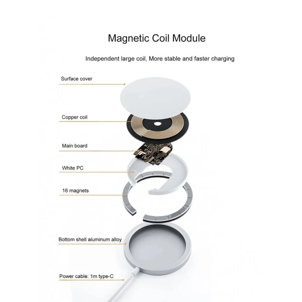 - Modulo bobina magnetica, grande bobina indipendente. Ricarica più stabile e più veloce