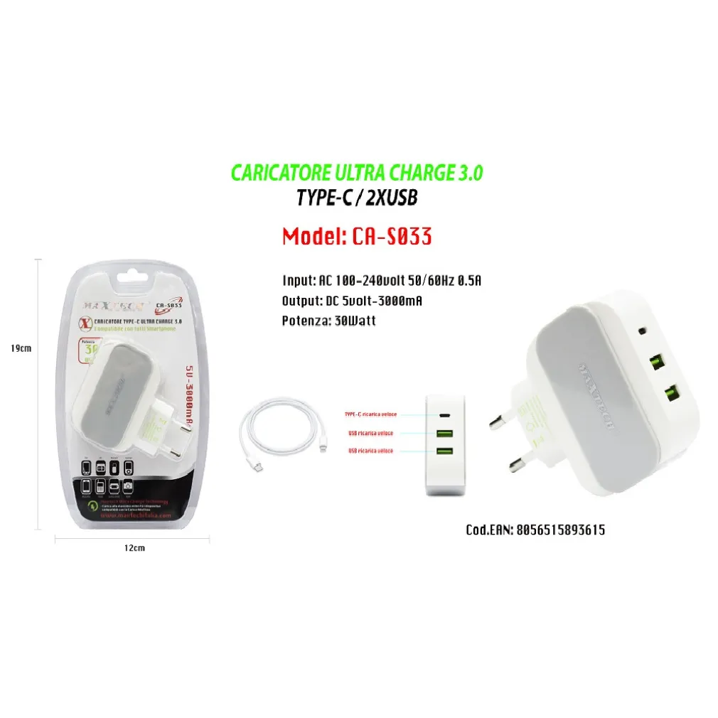 - Caricatore Ultra Charge 3.0 Type-C/2XUSB CA-S033