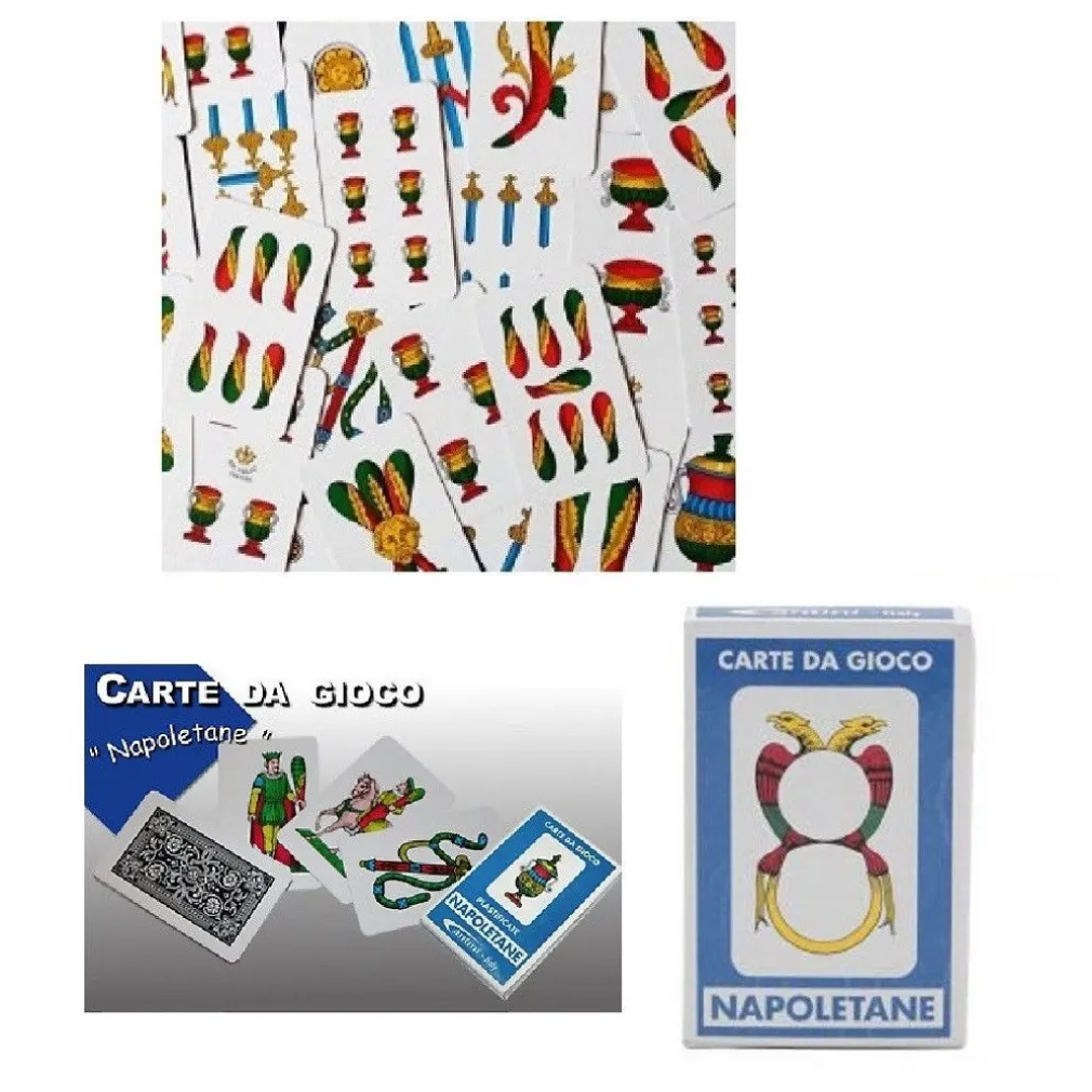 Scoprite il fascino delle carte napoletane, perfette per ogni appassionato di giochi da tavola. Il nostro mazzo di carte napoletane è ideale per una vasta gamma di giochi, da scopa, asso pigliatutto, briscola, sette e mezzo a solitario.