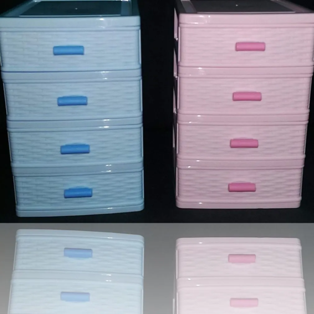 - 1x Cassetiera Contenitore 4 Cassetti in Plastica Multiuso con Effetto Vimini.